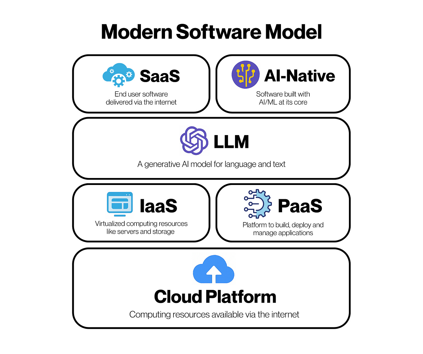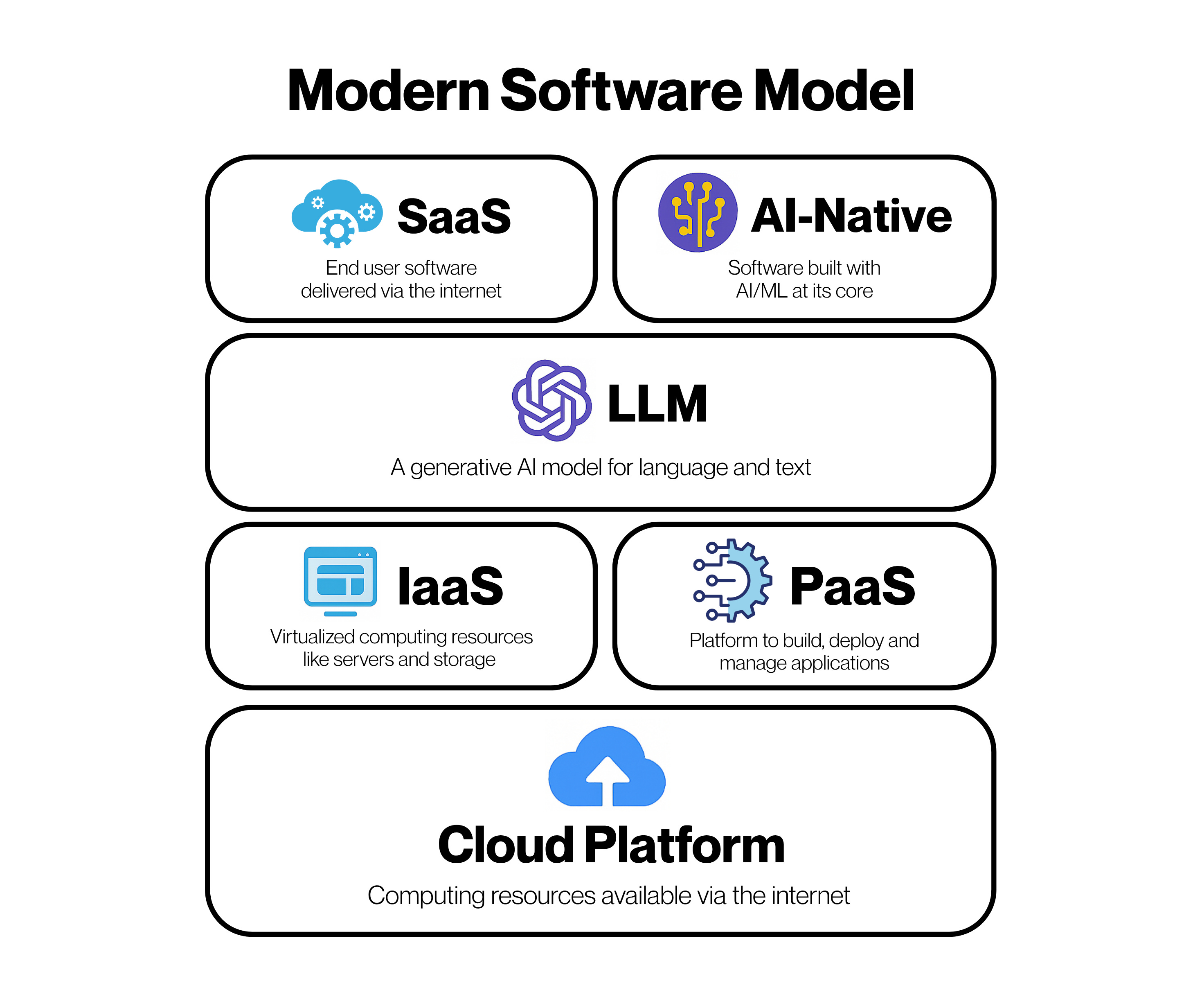 SaaS vs. AI-Native is only part of the story. Both rely on foundational cloud infrastructure. That’s why we define five categories of the modern “cloud” software model.